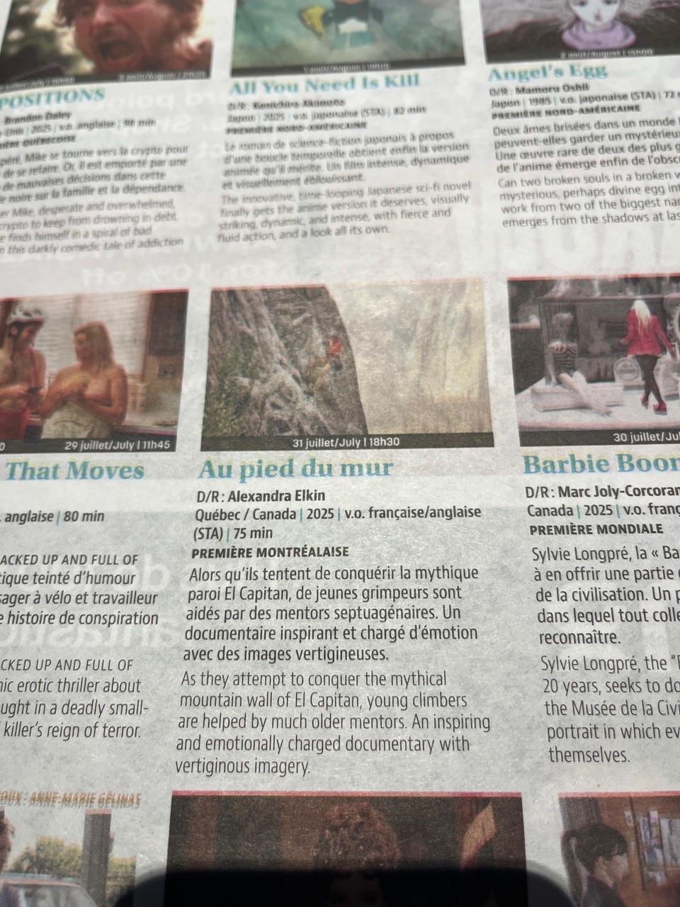 After the premiere and the campfire speech, I went climbing w/the whole film crew at Val-David.